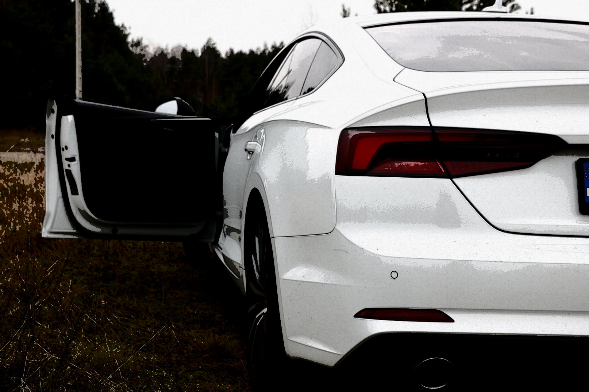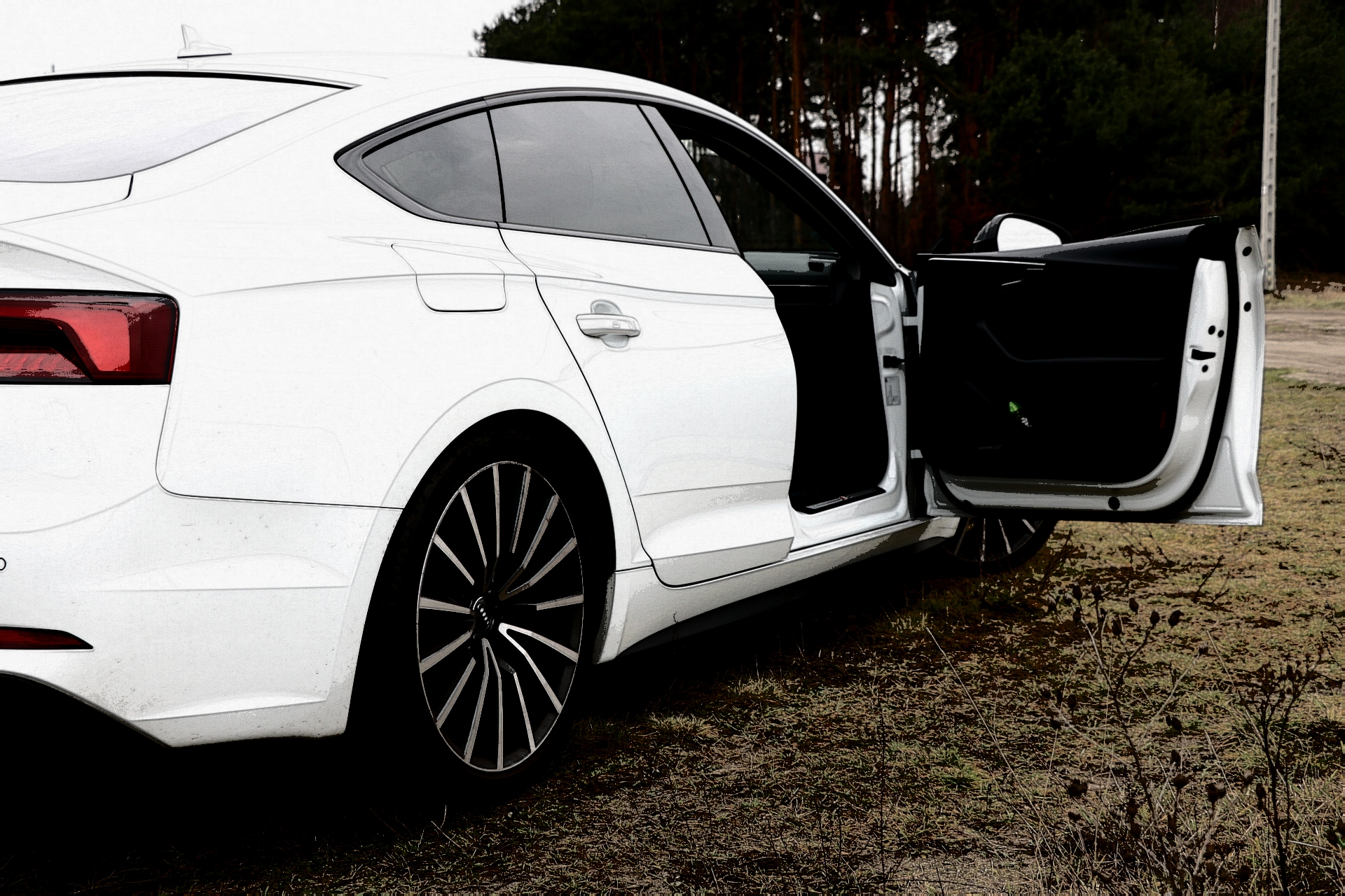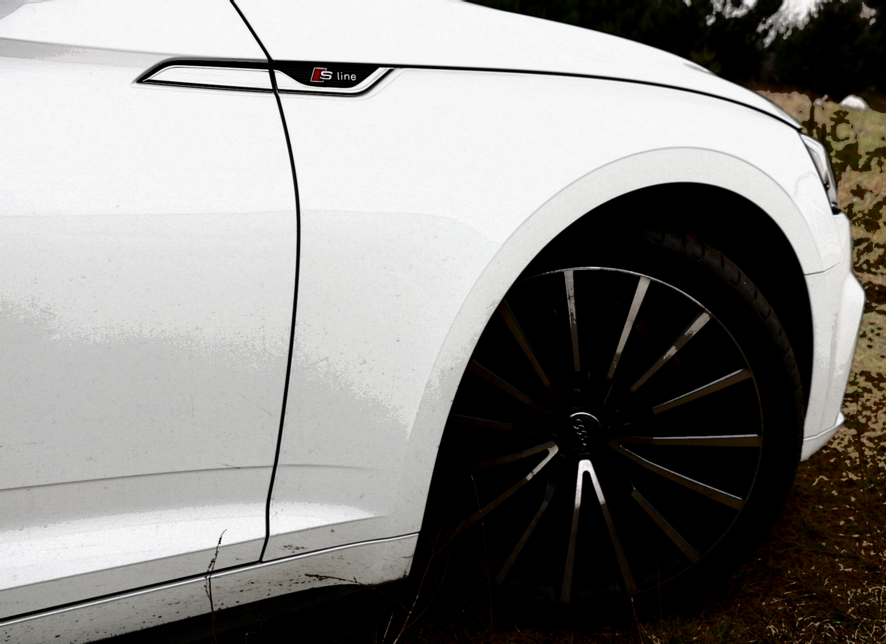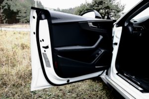 Z zewnątrz auto wygląda bardzo dobrze, zwłaszcza z pakietem S-line przykuwa wzrok, biały kolor podkreśla agresywną linię A5. Czarny dach i czarne lusterka nadają autu charakteru dopełniając dynamiczny look Audi.