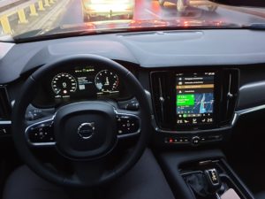 No właśnie jest i on. Limuzyna. Autoreprezentacyjne, nowoczesne, i wygodne. Można napisać że auto światowe( właścicielem jest Chińskie Geely; produkowane jest w Szwecji, a za design Elektroniki odpowiadał człowiek z Apple). Samochód który stara się połączyć innowacyjność marki z wszechobecną coraz śmielej wykorzystywaną technologię rodem ze smartphonów. Czy korzystnie? O tym za moment. Stylistykę z zewnątrz określilibyśmy jako stonowaną i biznesową. Auto oczywiście przykuwa uwagę, ale fakt, iż jedyny odważny akcent stylistyczny ( naszym zdaniem) dotyczy świateł jest zaletą. Widać w nim skandynawski styl który ukrywa piękno w prostocie. Może, nie sprawia on, że przechodnie odwracają głowy widząc ten samochód, ale odczuwalne jest poczucie stateczności i bezpieczeństwa mijając ten samochód na ulicy. Wsiadając do środka ma się mieszane uczucia. Z jednej strony jest komfortowo i ekskluzywnie, a z drugiej nie ma zbędnego przepychu i podkreśla to prostotę zamysłu inżynierów. Fajnym smaczkiem jest wykorzystanie naturalnych tworzyw i wkomponowanie ich w strukturę samochodu. I tu przechodzimy do chyba największej kontrowersji w tym modelu. Ekran dotykowy, odpowiedzialny za…w zasadzie wszystkie funkcje związane z podróżą, niby nic nowego bo przecież w innych markach też mamy do czynienia z ekranami do nawigacji itp. W volvo mamy jedynie 6 przycisków fizycznych( na konsoli głównej) i pokrętło startowe, a resztą opcji sterujemy dotykowym wyświetlaczem którego użytkowanie przypomina korzystanie ze znanego telefonu z nadgryzionym jabłkiem w logo. Jak wspomnieliśmy wcześniej nie jest to przypadek, gdyż twórca oprogramowania był związany blisko z Apple. Oczywiście dla osób korzystających z Androida sterowanie nie było naturalne, ale po kilku minutach nauki można się przyzwyczaić. Nie mniej jednak później nadal popełnia się błędy szukając odpowiednich opcji. Tu nasuwa się taka myśl, czy nie jest to zbyt absorbujące, i czy nie wpływa na bezpieczeństwo jazdy użytkownika, ale jednak skłaniamy się do twierdzenia że elementem ułomnym w tym wypadku nadal jest człowiek. Przechodząc do bardzie trywialnych spraw. Spalanie przy normalniej jeździe ok 8,5 l/100 km ale przy już delikatnie cięższej nodze spokojnie osiągniemy dwucyfrowy wynik. Auto jest przestronne, dość dynamiczne, ale według nas jego największym minusem jest to że istnieją wyłącznie jednostki z silnikami 2 litrowymi. Oczywiście przy wybraniu opcji hybrydy mamy prawie 400KM ale nadal jest odczuwalne że te 400 koni, męczy się niemiłosiernie i prosi się o większą jednostkę napędową rodem z BMW czy Audi. Niestety w erze poprawności politycznej i ekologicznej jest to mrzonka, ale pokuszę się o stwierdzenie, że gdyby ten model miał mocniejsze ( większe) jednostki napędowe otarł by się o ideał.